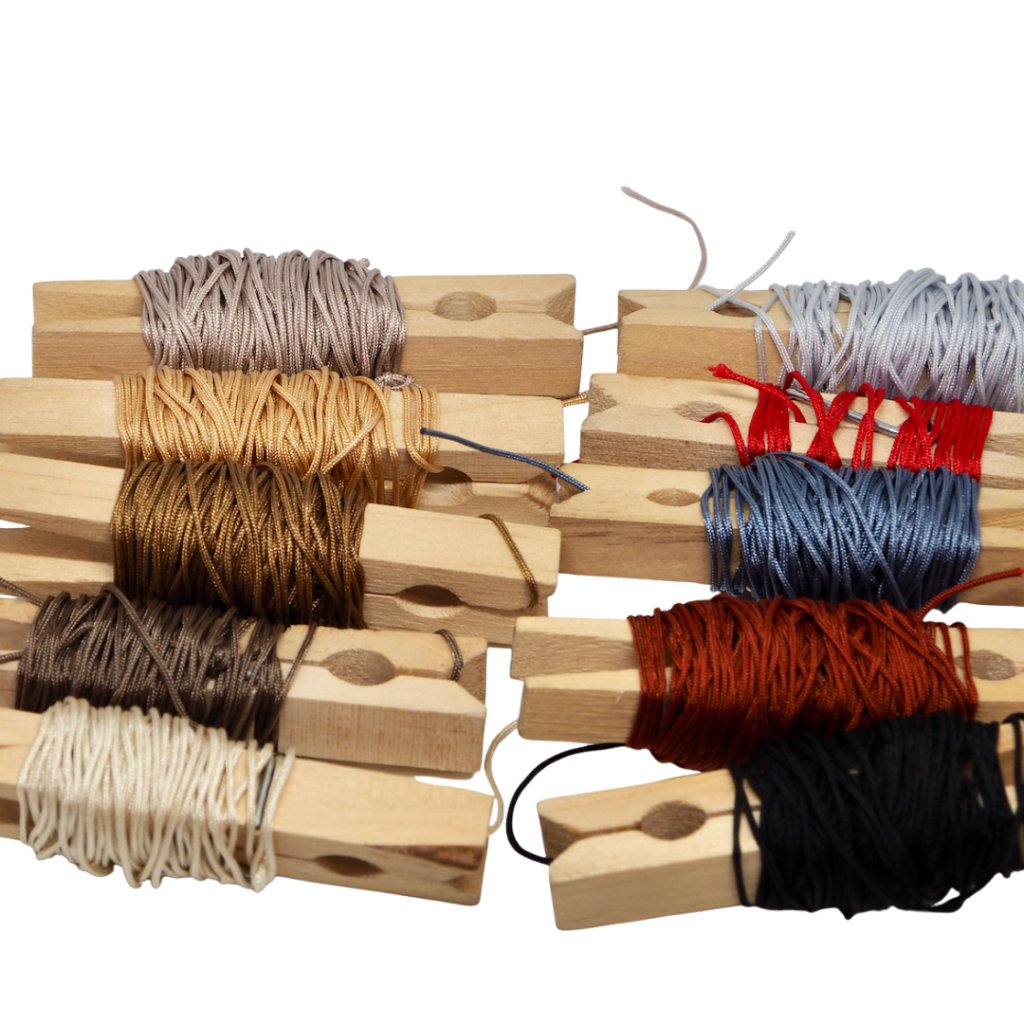 The bracelet is available in several nylon cord colors. The fastening is designed so that the small beads holding the cords can be slid all the way to the knots, ensuring a clean, comfortable look with no loose ends.