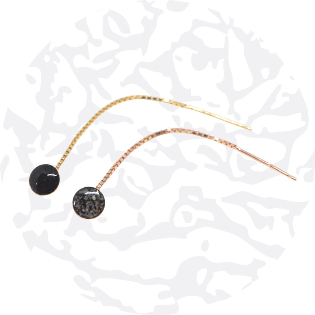 The main feature of these earrings is a sand-filled drop on a delicate chain.