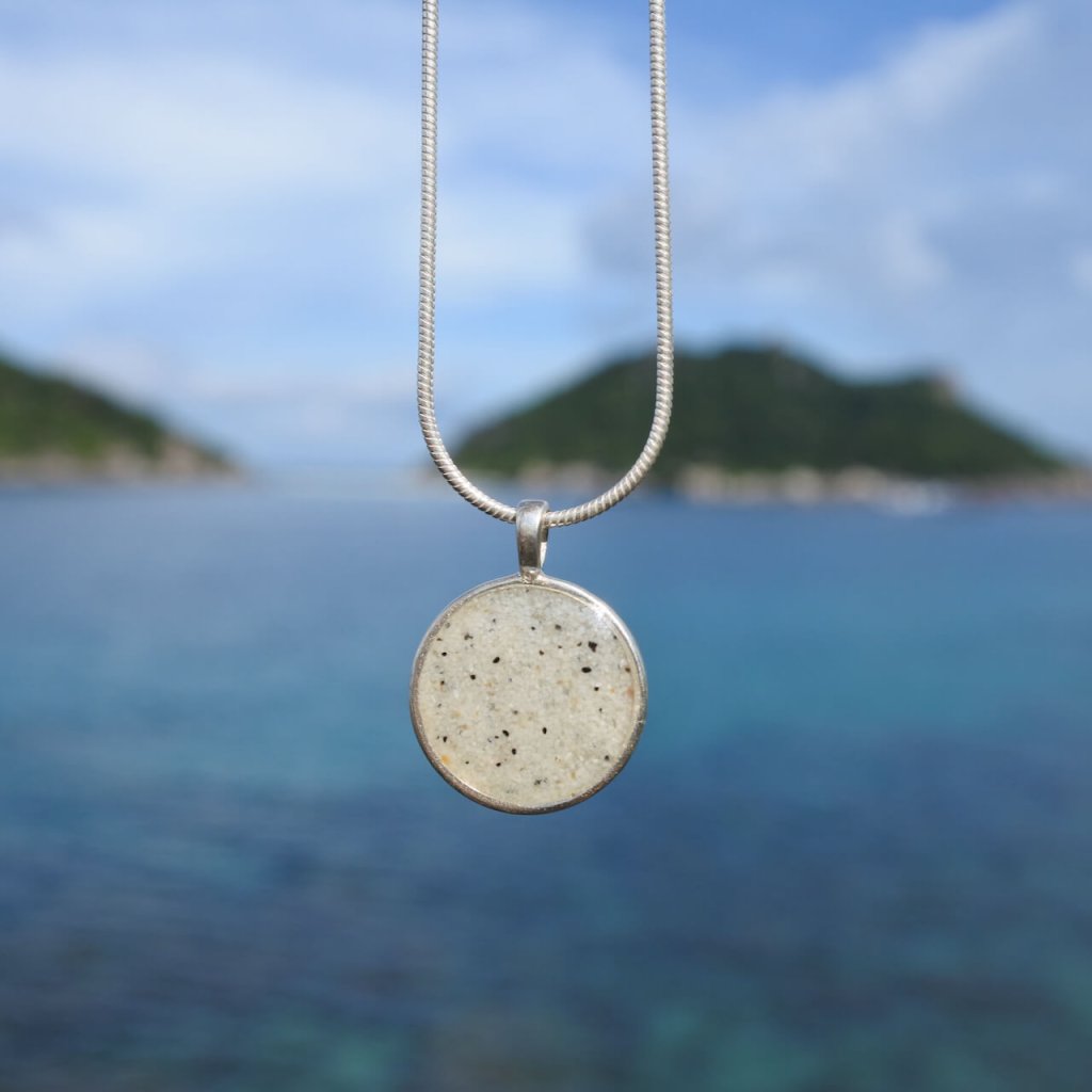 Our original gift wrapping is included with every piece of jewelry. Inside a cotton pouch with our logo, you'll find a handwritten photo from the location where the sand comes from, along with a card sharing our story and jewelry care instructions. For an even better unboxing experience, you can also send us your photo to include.