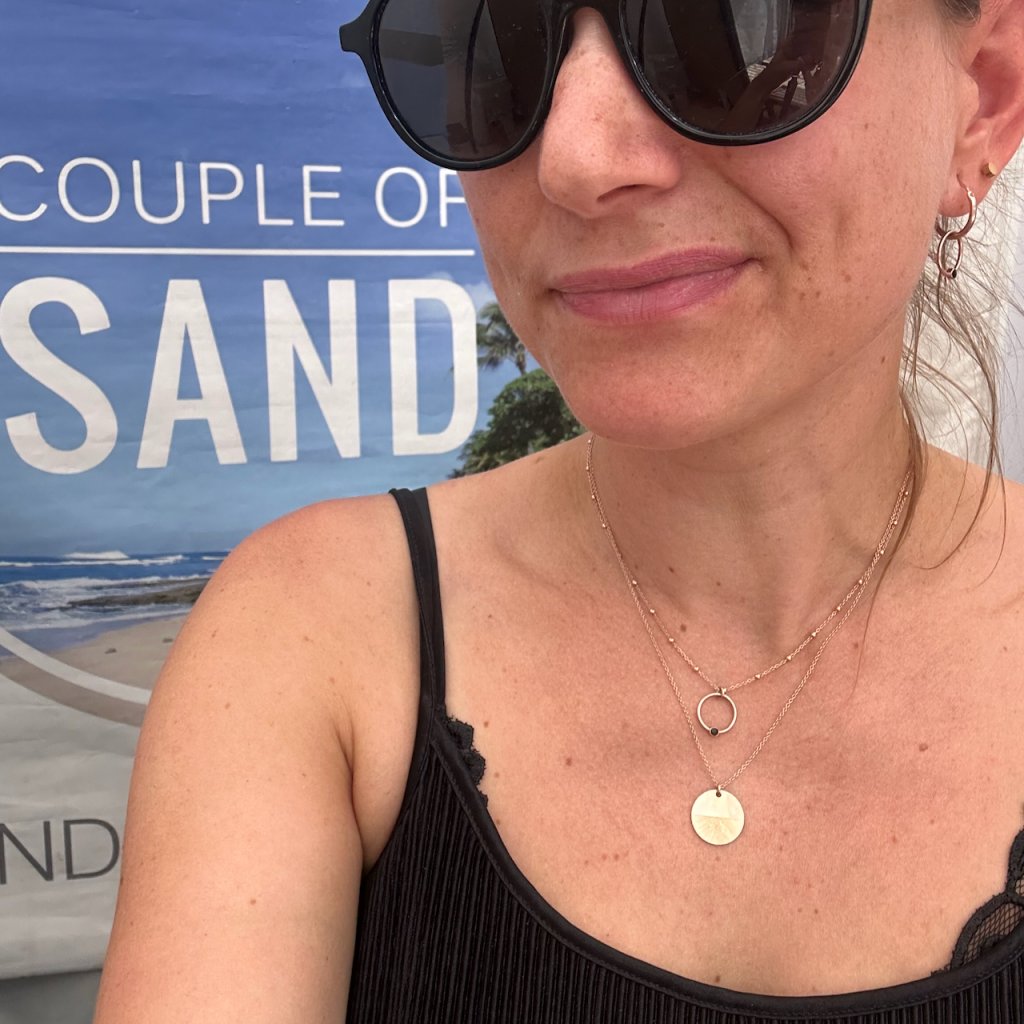 Jedinečným prvkem tohoto náhrdelníku je náš ikonický kroužek CIRCLE, ve kterém je vsazena kapka s pískem dle Vašeho výběru.  Průměr přívěsku CIRCLE je 14mm, kapka na písek má průměr 2mm a lze použít jen jemný písek.