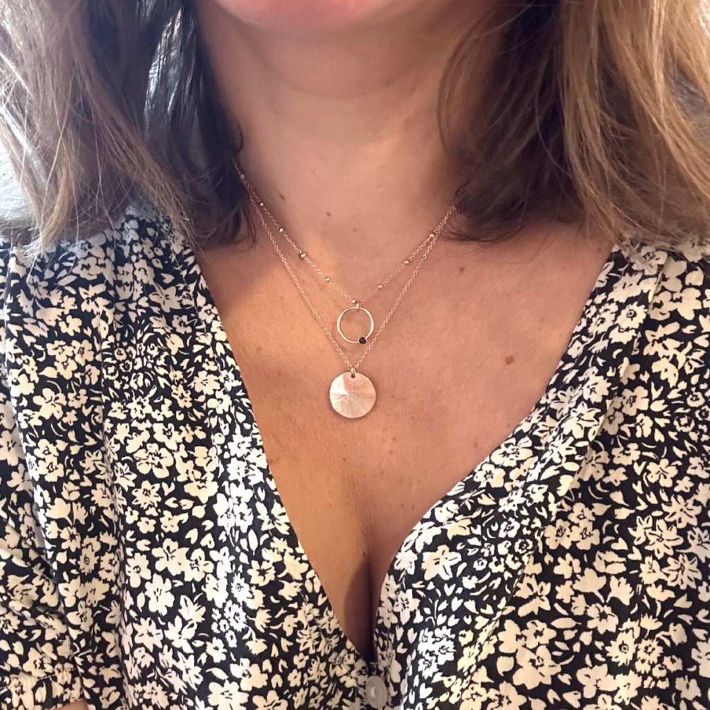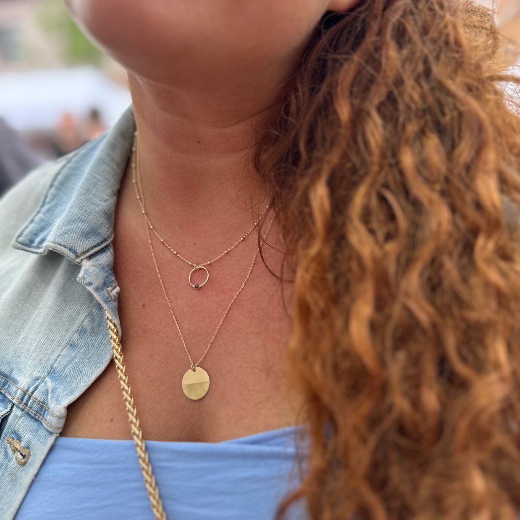 Tento set kuličkového řetízku CIRCLE choker a tepaného medailonku Vám připomene nejen nekrásnější západy slunce