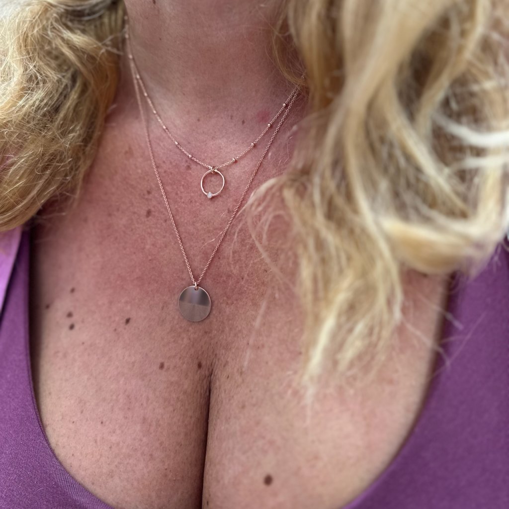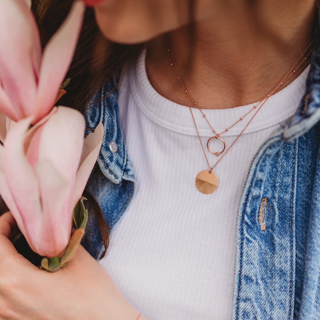 Tento kroužek je zavěšený na kuličkovém řetízku, který je velmi populární pro efekt, který na dekoltu vykouzlí. Náhrdelník díky němu ještě více ozdobí krk. Náhrdelník by měl sedět “do jamky”  a nabízíme dvě varianty délky řetízku, aby nositelce perfektně padl.