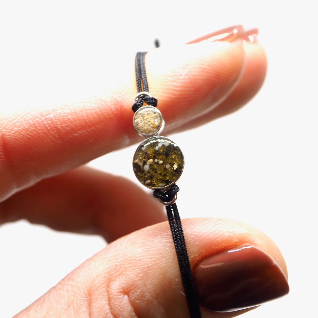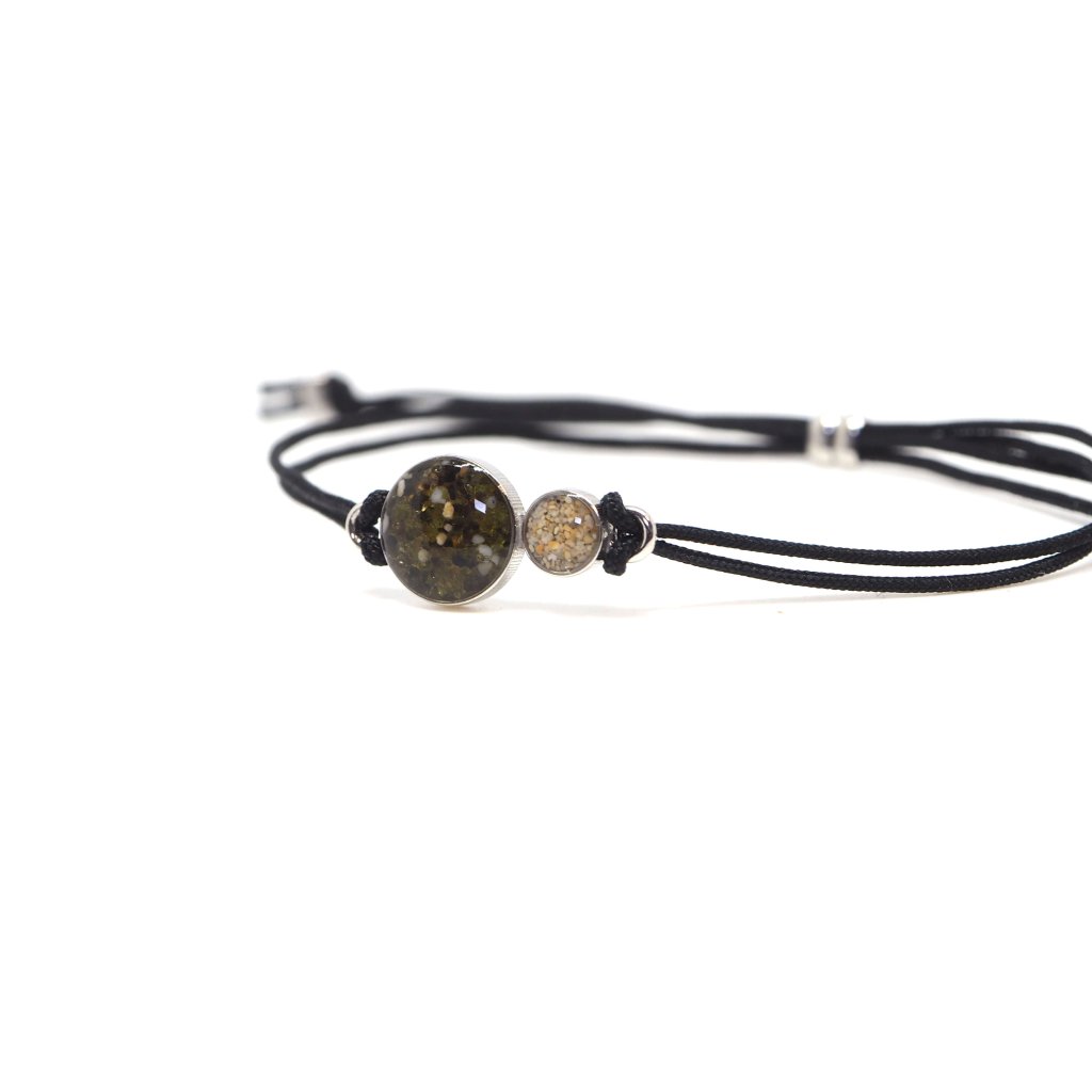 Jemný náramek z kolekce DOUBLE DROP je vyrobený z rhodiovaného stříbra naplněný dvěma písky dle vašeho výběru.