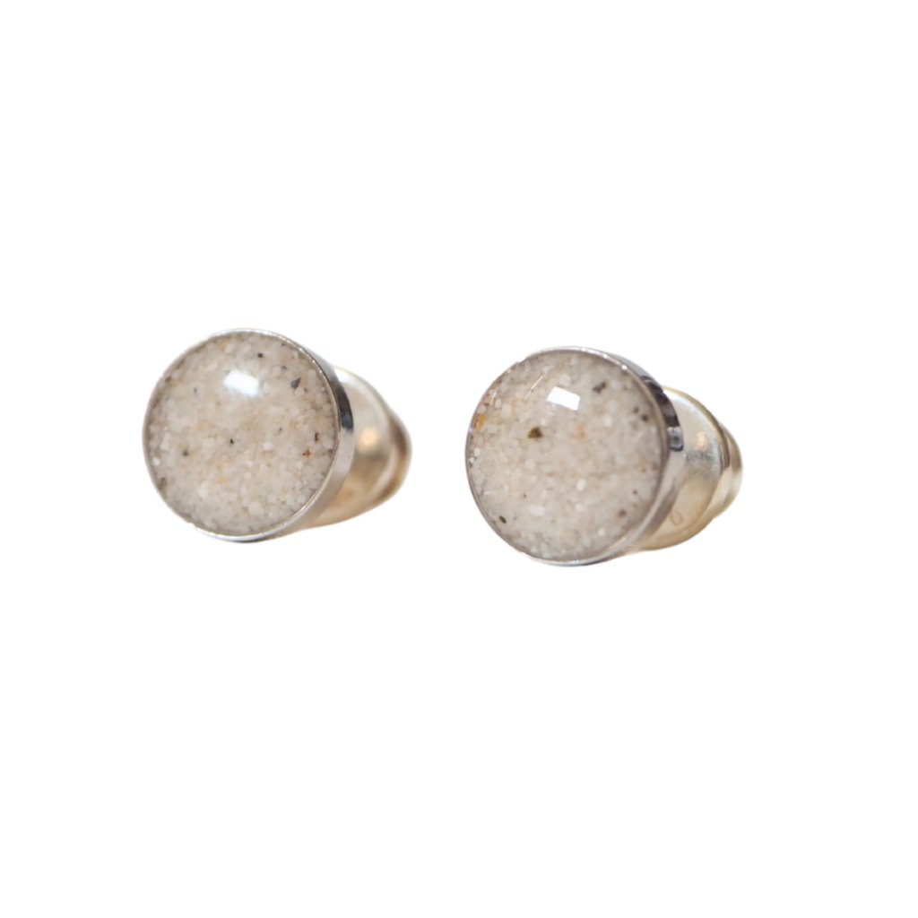 V hlavní roli těchto náušnic je kapka s pískem.I když je 6mm stále decentní velikost, tak nabízí dost místa, aby každé zrnko písku vyniklo. Vejdou se sem i menší kousky lastur, nebo lámaných mušlí.