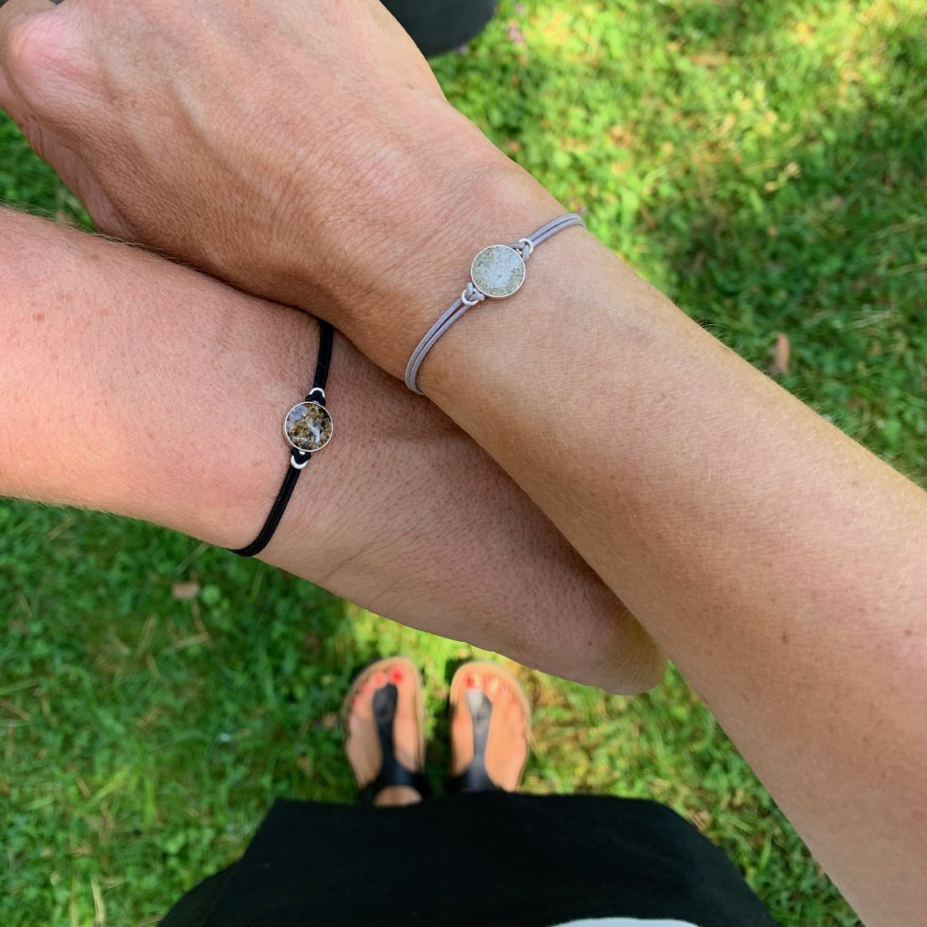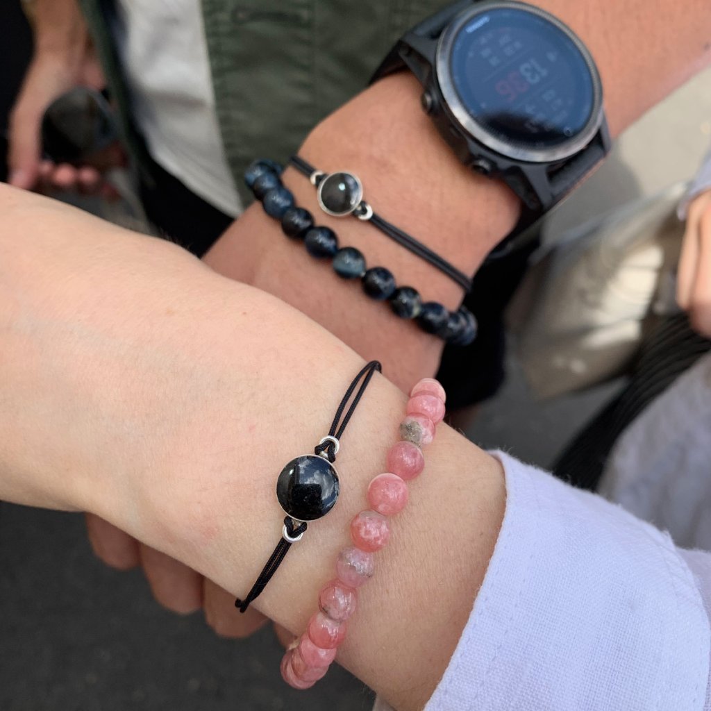 Set těchto náramků si můžete navolit přesně podle představ. Na výběr máte ze třech možností: pevné nylonové šňůrky s posuvným nerezovým zapínáním, pružná gumička s nerezovými komponenty, nebo celostříbrný řetízek z rhodiovaného stříbra.
