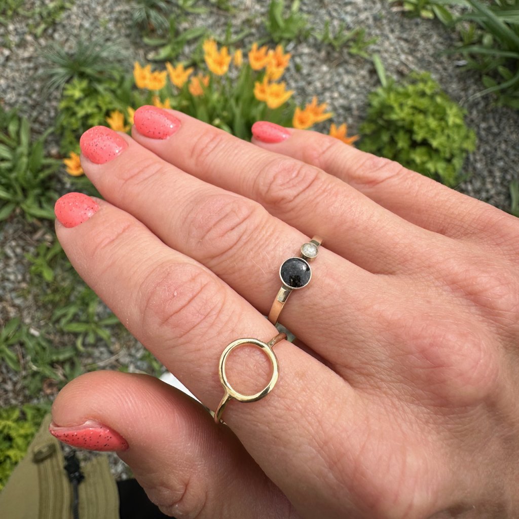 Set dvou prstenů - prstýnku se dvěma písky z kolekce DOUBLE DROP a prstenu se symbolem kruhu KARMA.